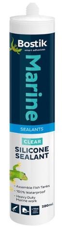 Bostik Silicone Sealant Marine is excellent for building of fish tanks and aquarium, or almost any other heavy duty marine work. Ideal for general purpose sealing, waterproofing and weatherproofing requirements in and around the house. The sealant is extremely resistant to UV, weathering, ageing and water, and offers excellent chemical resistance and is unaffected by alcohols, dilute acids and alkalis, soap and household detergents. The sealant remains flexible over a wide range of temperatures from -40°C to 100°C. It also performs as an excellent adhesive on non-porous surfaces where an elastic gap-filling bond is required. It does not contain a fungicide which may be harmful to aquarium fish.